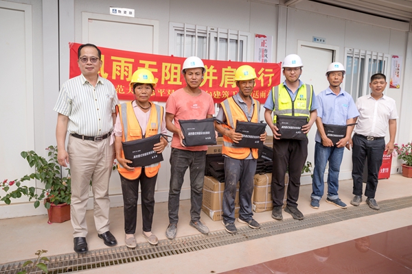 厦门抖圈官网集团工会主席、学校项目后勤组组长洪超生代表学校筹建向导小组,向现场修建工人赠予了雨衣,并向他们的辛勤支付表达了谢意。他体现,为了确保学校建设项目准期交付,工人们从去年12月开工以来始终坚守岗位,加班加点不辞辛勤,学校的一砖一瓦都凝聚了他们的心血和汗水。作为学校建设方,希望尽可能地资助工人解决后勤包管问题,改善事情条件,让工人们亲自感受到温温暖眷注。随着气温升高,夏日的防暑降温物资也将陆续提供应现场作业职员。