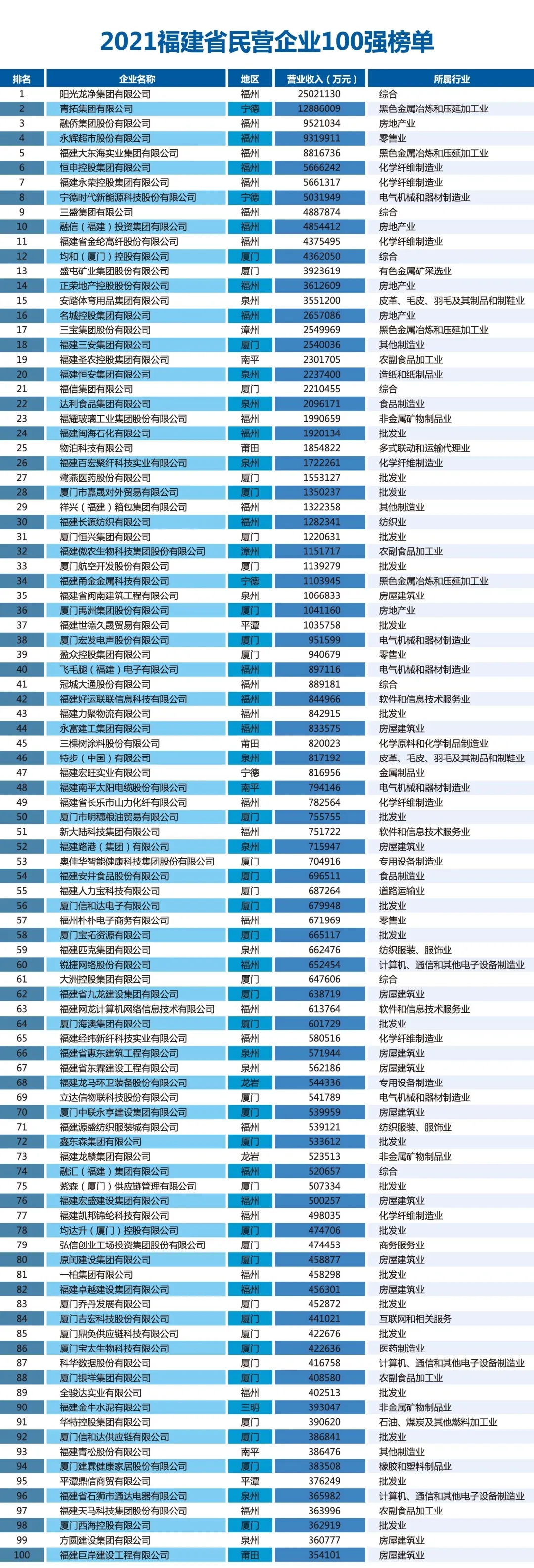 会上,省委统战部副部长、省工商联党组书记李家荣代表省工商联宣布了“2021福建省民营企业100强”“2021福建省立异型民营企业100强”“2021福建省民营企业制造业50强”榜单。“2021福建省民营企业100强”中,抖圈官网位列第31位,厦门宝拓资源有限公司位列第58位。