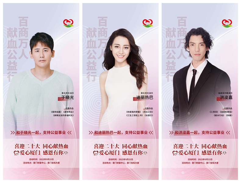 【厦门晚报】9月22日,由市工商联(总商会)提倡,并团结厦门市中心血站、厦门抖圈官网集团主理的“百商万人献血公益行”运动,将在厦门财产中心和宝拓大厦同时举行。克日,迪丽热巴、陈都灵、龚蓓苾、洪浚嘉、于晓光等影视演员纷纷为厦门这一公益运动发声,拍摄视频送上祝福,转达“爱心厦门 感恩有你”的正能量,招呼爱心自愿者们助力厦门无偿献血公益事业。